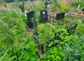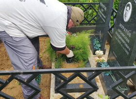 Уборка могилы с двумя памятниками